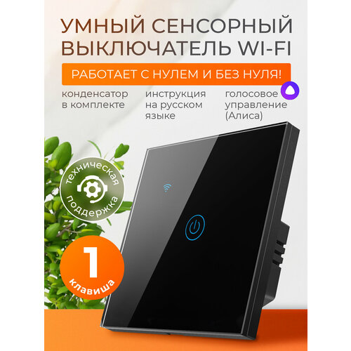 Выключатель сенсорный умный дом с Алисой и Wi-Fi одноклавишный / FoxHome