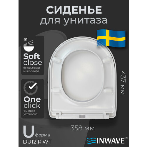 Сиденье cтульчак для унитаза быстросъемное с микролифтом INWAVE DU012 из дюропласта, размер сиденья 42*34*2 см