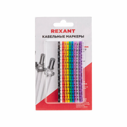 Кабельный маркер-клипса с маркировкой от 0 до 9 и диаметром от 4 до 6 мм + отверстие для проводника REXANT