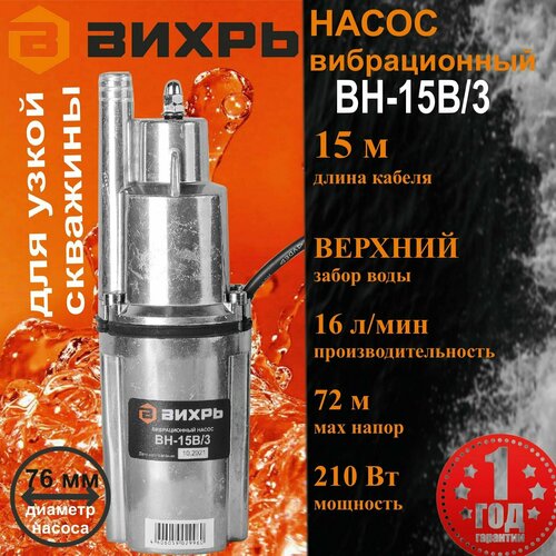 Насос погружной вихрь ВН-15В/3 с верхним забором воды / кабель 15 м / вибрационный садовый Ручеек