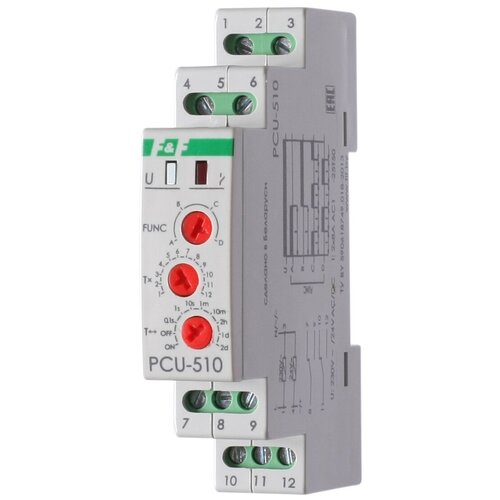 Реле времени PCU-510 (многофункц. 230В 2х8А 2перекл. IP20 монтаж на DIN-рейке) F&F EA02.001.009 (9шт. в упак.)