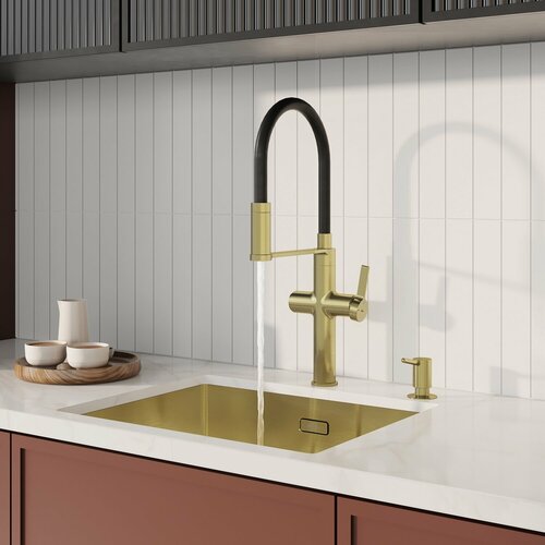 Смеситель для кухни с каналом для фильтрованной воды и гибким изливом IDDIS Ikon IKNMGFFi05 матовое золото