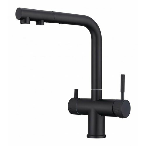 Смеситель однорычажный для кухни с выдвижной лейкой и подключённый фильтр. (Черный) HANSEN HN15058-C