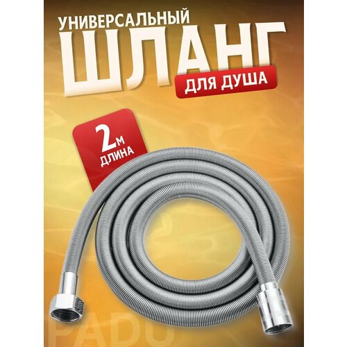 Шланг для душа армированный, усиленный, длина 2 метра, серебристый металлик