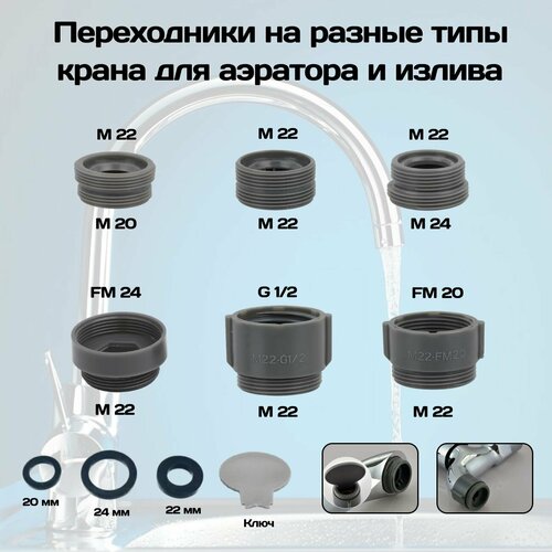 Переходники на крана, смеситель для аэратора и насадок и излива. Комплект из 6 шт.