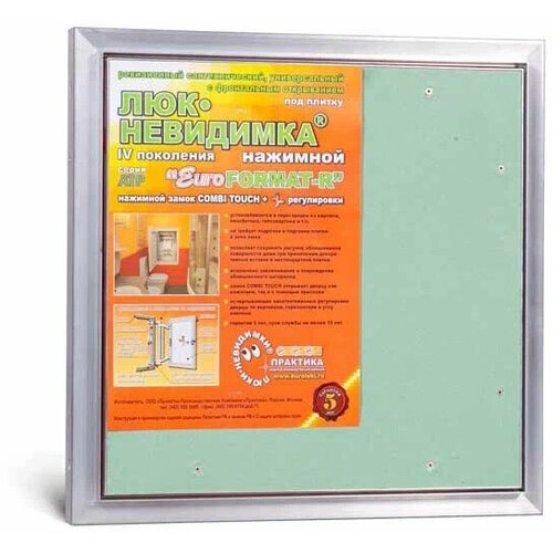 Люк ревизионный под плитку нажимной Практика Евроформат АТР 400-600 мм, алюминиевый, скрытый