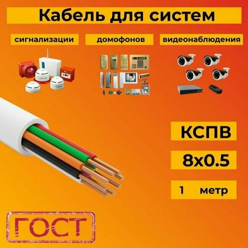 Кабель для систем сигнализации/видеонаблюдения, домофонов ГОСТ КСПВ 8х0.5 мм (0,20 мм2) - 1 м.