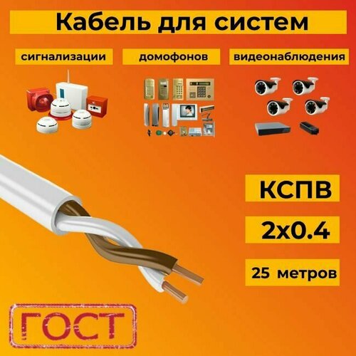 Кабель для систем сигнализации/видеонаблюдения, домофонов ГОСТ КСПВ 2х0.4 мм (0,12 мм2) - 25 м.