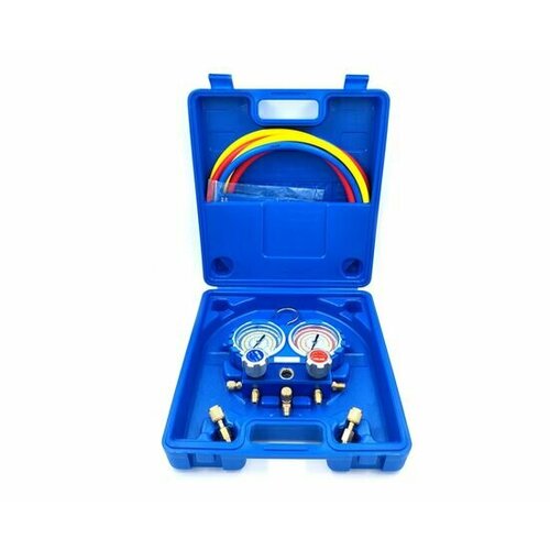 Манометрический коллектор VALUE VMG-2-R410A-02 (R410,407,134,22) 2-х вентильный, в кейсе, 3 шланга 120 см, 2 адаптера R410 x R 22, манометры 80 мм