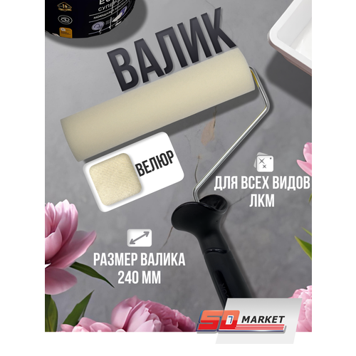Валик малярный из велюра 10 см c рукояткой и ванночкой 150 х 300 мм DECOR