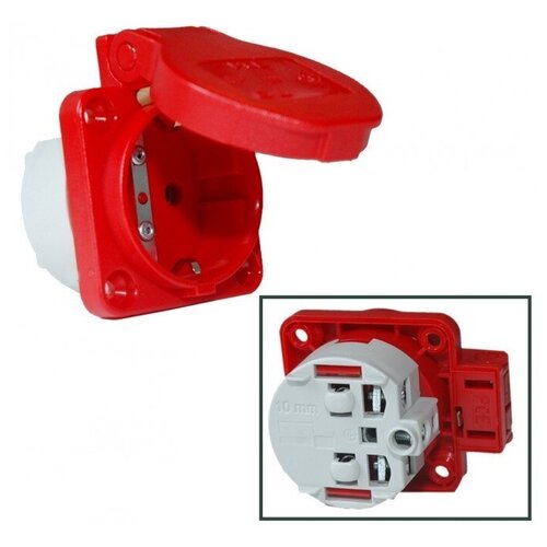 Встраиваемая розетка PCE 16A 250V 2P+E IP54 подключение сзади 50х50 красная 105-0r 16040324