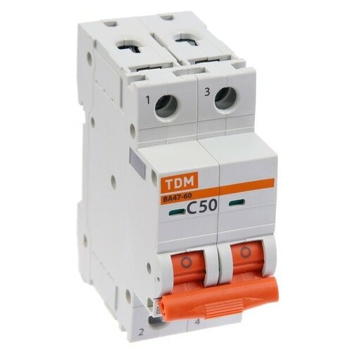 Выключатель автоматический TDM ВА47-60, 2п, 50 А, 6 кА, C, SQ0223-0098