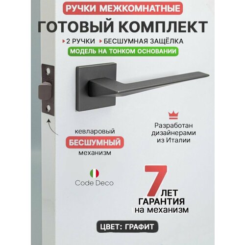 Готовый комплект 2в1 ручка дверная межкомнатная CODE DECO РР Slim H-30133-A-GRF на тонком основании / цвет Графит + защелка без фиксации