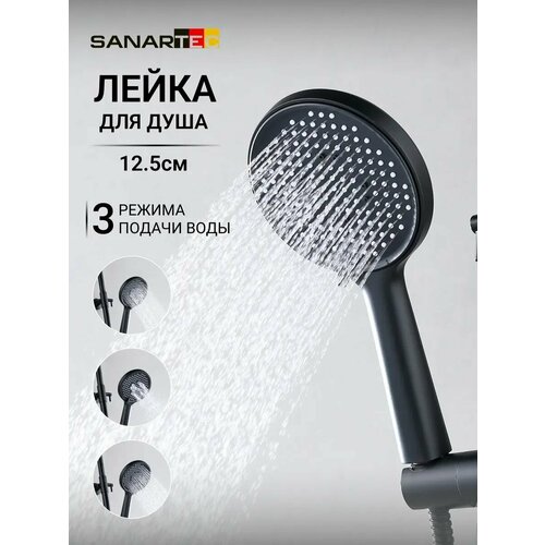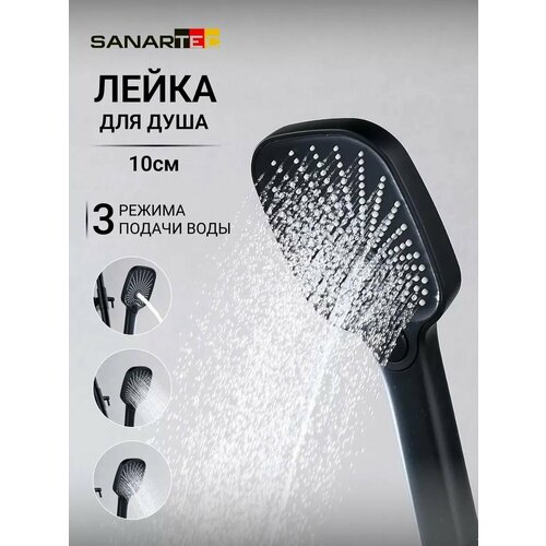 Лейка для душа Sanartec, 3 режима, матовая черная, ABS-пластик