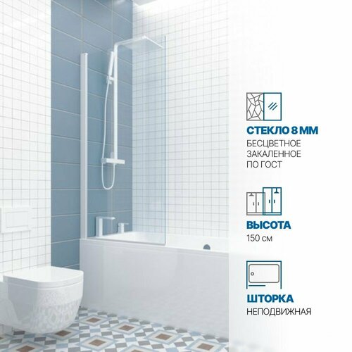 Шторка на ванну GWMPLP61ASQ 80x150 см, фурнитуры матовый, стекла бесцветный, стекло закаленное 8 мм