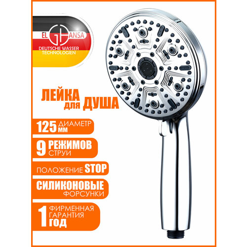 Лейка душевая 9-ти режимная круглая 125 мм с функцией STOP, ABS-пластик ELGHANSA MG-055-Chrome