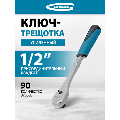 Ключ-трещотка Gross 1/2", CrV, 90 зубьев, усиленный, хром 14055