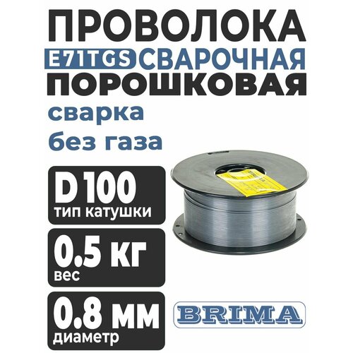 Проволока сварочная порошковая Е71TGS (0.8 мм, 0.5 кг) BRIMA порошковая самозащитная с флюсом E71T-GS / катушка D 100, 0,5 кг