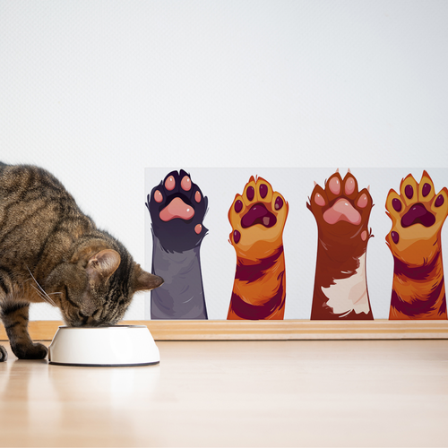 Защитная самоклеящаяся пленка / фартук для декорирования стен и пола на месте кормления или туалета "Рыжие лапы вверх" (50х25 см)
