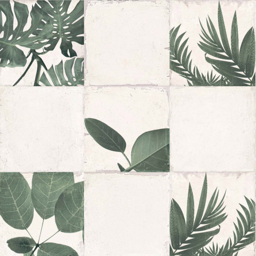 Самоклеящаяся антивандальная пленка для декора мебели и кухонных фартуков. "Плитка и листья". 60х155 см.
