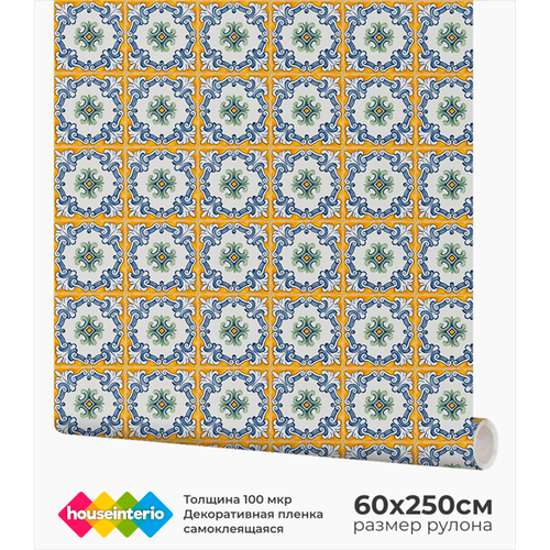 Самоклеящаяся антивандальная пленка для декора мебели и кухонных фартуков. Португальская плитка блестящая. 60х155 см.