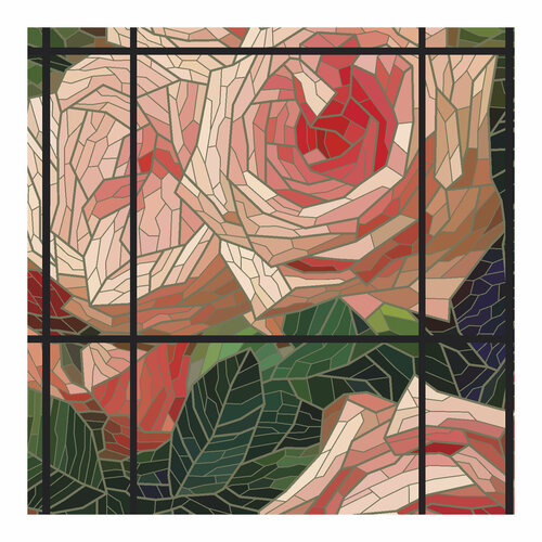 Витражная самоклеящаяся пленка для окон / стёкол. Розы 2/3. 70х140 см.
