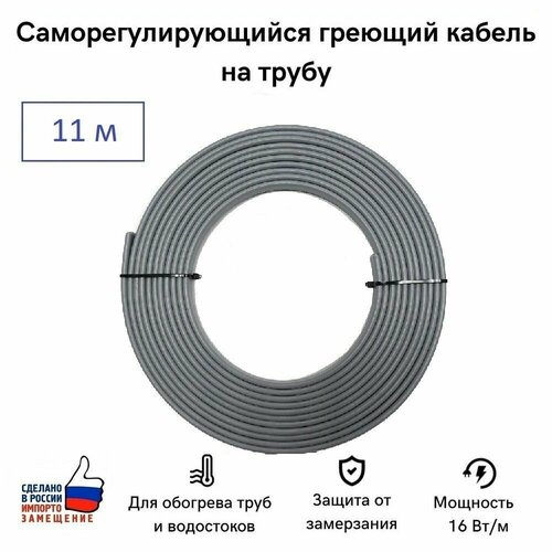 Саморегулирующийся греющий кабель на трубу СТН 11 м 176 Вт, на отрез