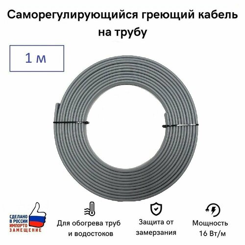 Саморегулирующийся греющий кабель на трубу СТН 1 м 16 Вт, на отрез