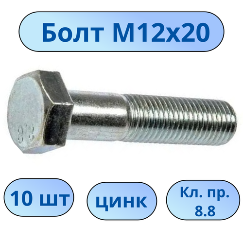 Болт М12х20 цинк (кл. проч. 8,8) 10 шт