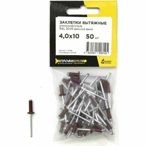 Заклёпки Профикреп RAL3005 красное вино пакет, 4,0х10, 50 шт. 114198