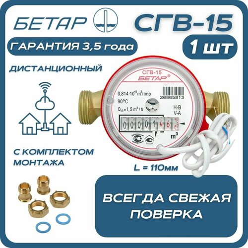 Счётчик воды бытовой Бетар СГВ 15 с дистанционным снятием показаний и монтажным комплектом