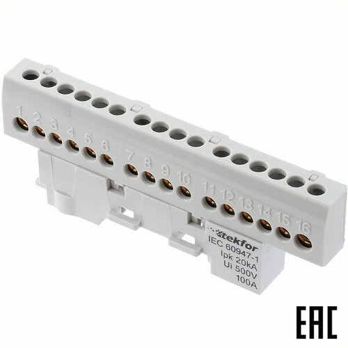 Шина 06-07-009 ноль серый изолятор на 16 присоединений латунь 100А Текфор (2 шт. в комплекте)