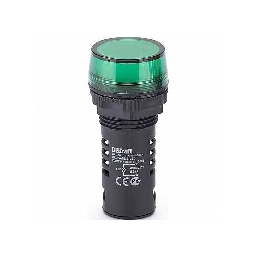 Лампа сигнальная ЛК-22, 22мм. кв 220В, AC/DC Зеленый | код. 25118DEK | DEKraft (4шт. в упак.)