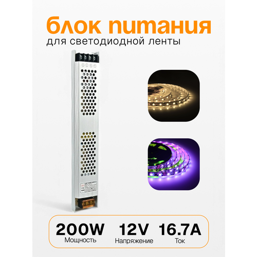 Блок питания для светодиодной ленты 12В, 200 Вт 310mm*53mm*22mm
