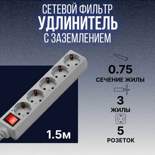 Сетевой фильтр Buro 500SL-1.5-G, 5 розеток, с/з, 7А / 1500 Вт 5 1.5 м 440 мм 310 мм 53.8 мм серый