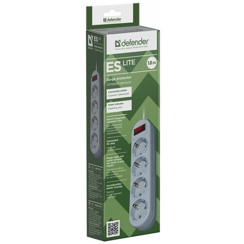 Сетевой фильтр Defender ES Lite 1.8 м, белый