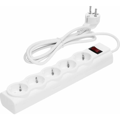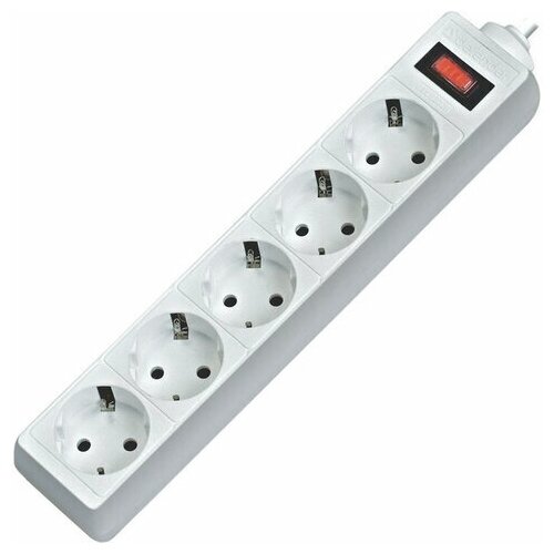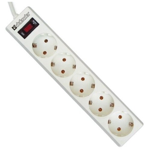 Сетевой фильтр-удлинитель Defender 5 розеток с заземлением , 1.8 метра , выключатель белый