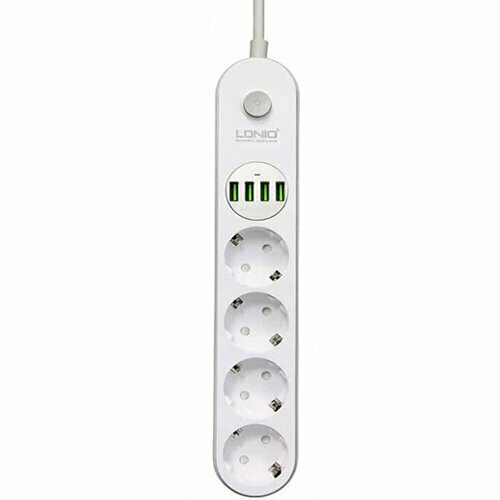 Сетевой фильтр LDNIO SE4432 - 4 розетки + USB зарядка 4 порта 3.4A, бело-серый - 4 метра