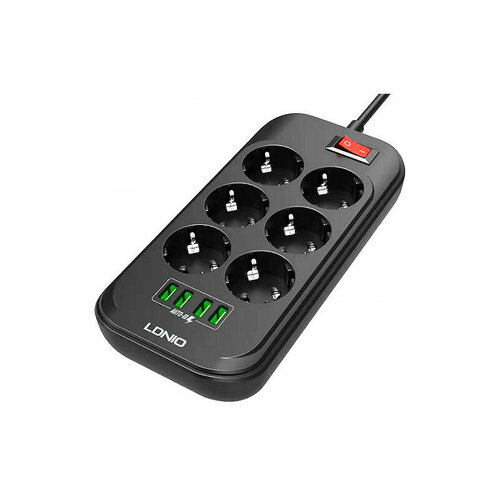 Сетевой фильтр Ldnio SE6403 6 Sockets 4xUSB 4000W 2m Black-Grey LD_D0421