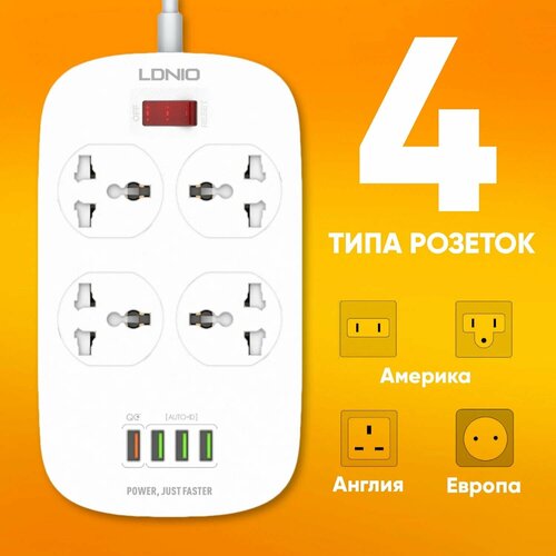 LDNIO Z4/ Адаптер-переходник для розеток: EU_UK_US_AU/ White