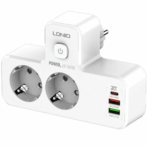 Сетевой фильтр LDNIO SC2337 без провода - 2 универсальные розетки + USB зарядка 3 порта PD + QC3.0 -