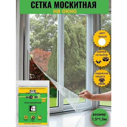 Сетка москитная с крепежом для оконных проемов, в пакете, белая, 1,5мх1,5м зеленый