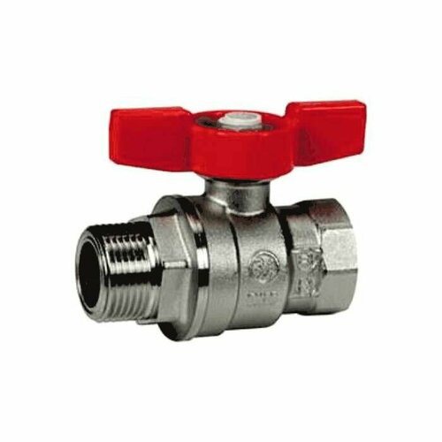 Кран шаровой Giacomini, R854, полнопроходной, 1/2", ВН, ручка-бабочка красная, латунь, хромированный