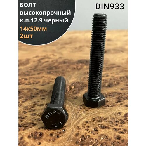 Болт высокопрочный 14х50 мм, DIN933, к. п.12.9 черный, 2 шт.