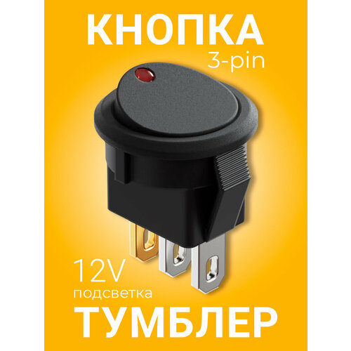Выключатель GSMIN AK78 кнопка тумблер автомобильный с подсветкой 3-Pin, 12 В (Красный)