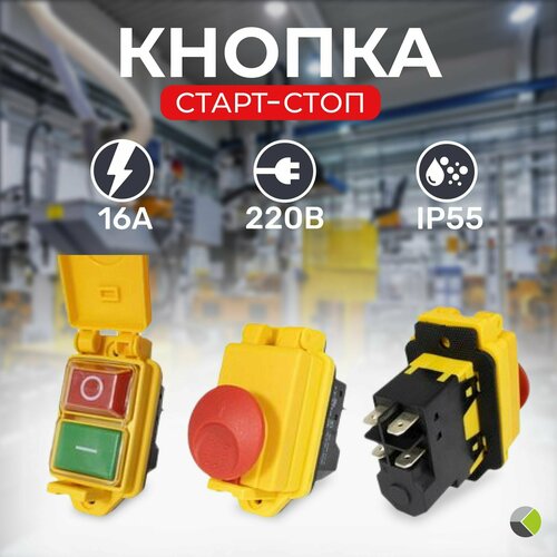 Кнопка пусковая для бетономешалки электропилы двигателя "Пуск-Стоп" герметичная IP55 с защитной крышкой