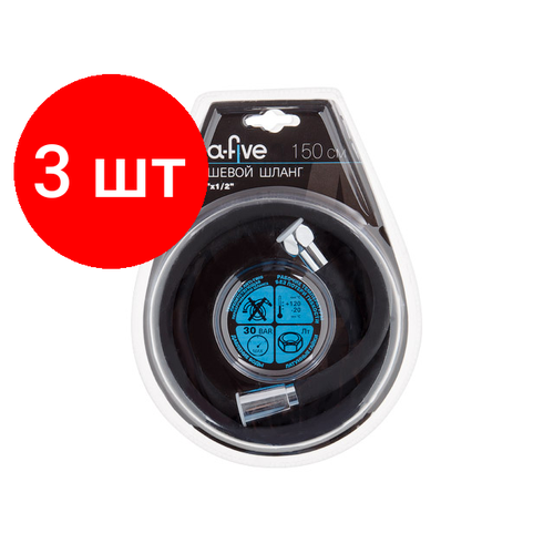 Комплект 3 штук, Шланг душевой, Si, 1/2" г-г 150 см, черн, A-five (Гайка латунь (anti-twist)) (A5-006)