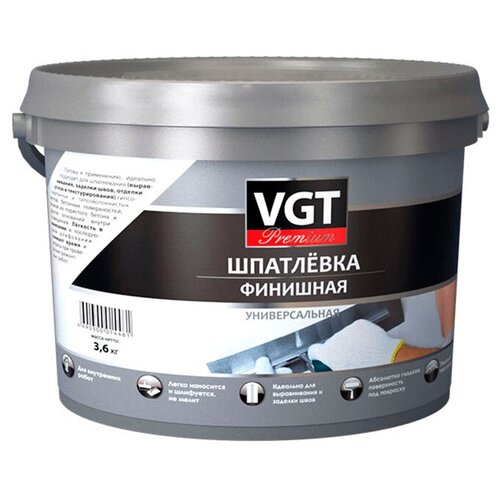 Шпатлевка VGT акриловая универсальная выравнивающая, белый/серый, 3.6 кг