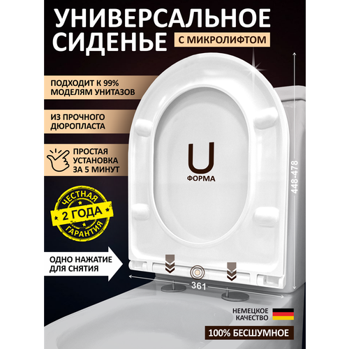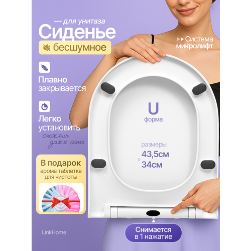 Сиденье для унитаза LinkHome, с микролифтом, белое, овальное, U образное