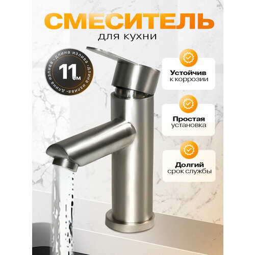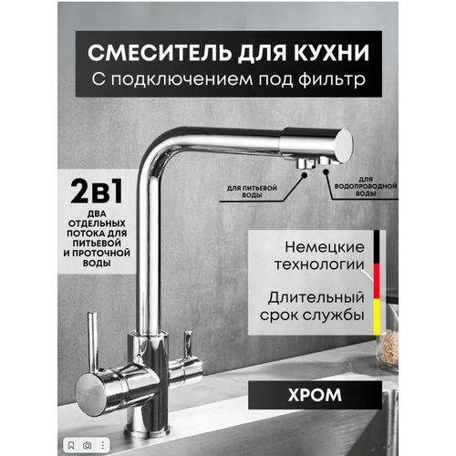 Смеситель для кухни с фильтром Aqua Silver серебристый, кран для раковины, нержавеющая сталь